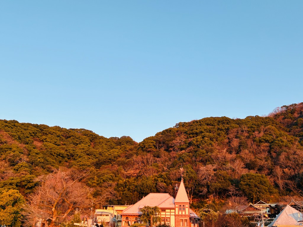 夜に外気温がマイナスになる経験は神戸に来てなかなかありません。冷え込む間際の夕日はとても美しく、夜になる手前の明暗をくっきりと浮かばせてくれます。