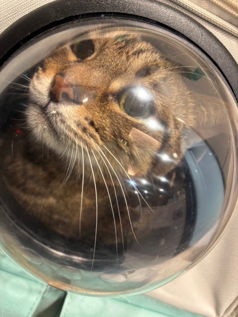 病院のリュックサックで、宇宙船窓からのぞいてくるかわいい子♪
