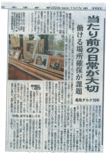 鳥取DARCが地元新聞で取り上げられたとのことで記事をいただきました。