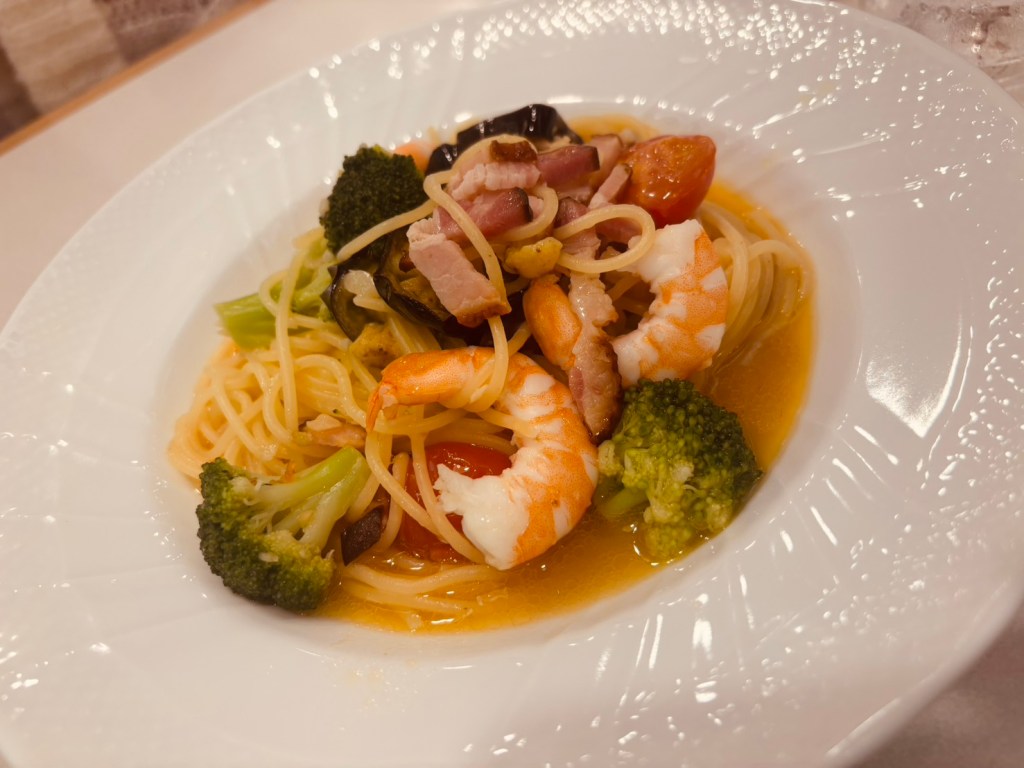 パスタも息子から見てなかなかの美味しさだったそうですが、私はそれよりお皿に驚きました。