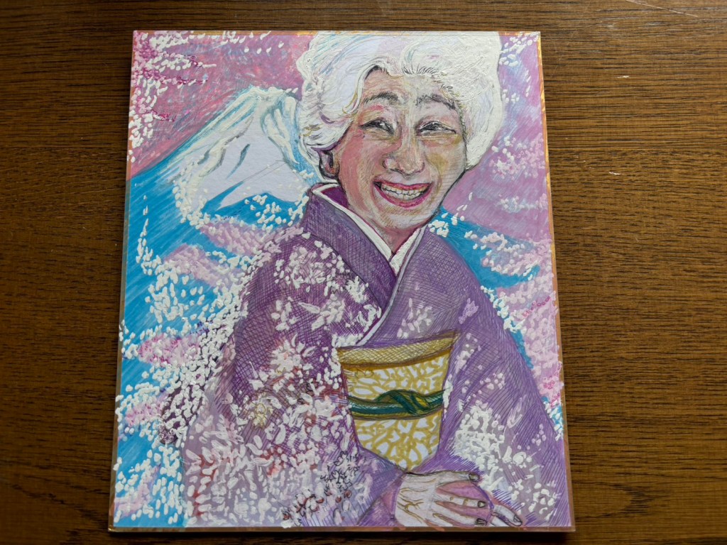 虹の世界に旅立っているタスマニア出身のジュディスカーペンターの通訳をされていた谷崎 智美 様より母の写真をイラストにしてお贈りくださいました。